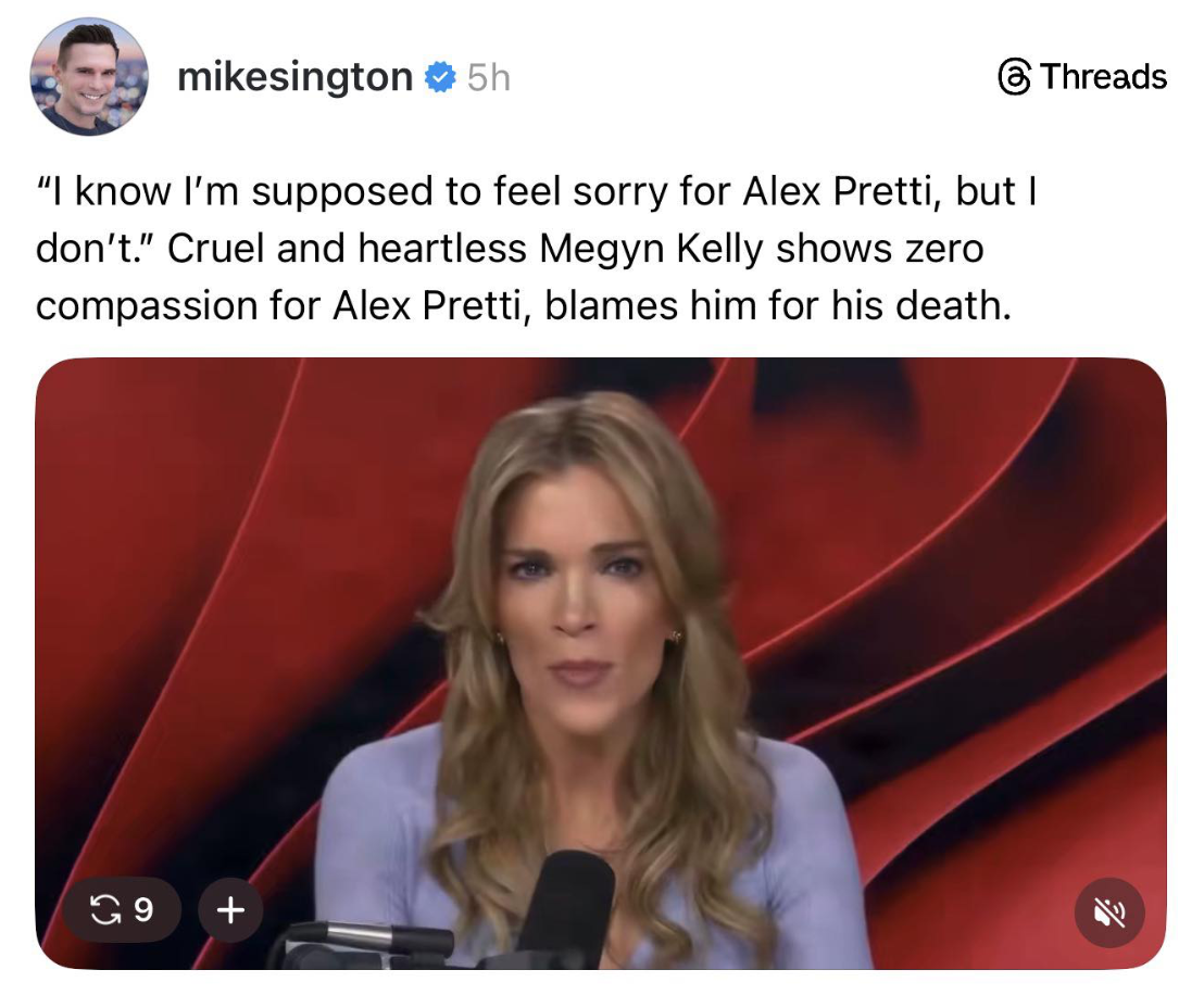 Megan Kelly is offensive and destructive. She also has the right to say what she says, even as indefensible as it is, and to her advantage a very large financialy lucrative platform. One that gives her the right to say things like, “shut up and dribble”, “shut up and sing”. And fully display that she has no compassion. I don’t remember what she said about Ashley Babbitt. Doesn’t matter.